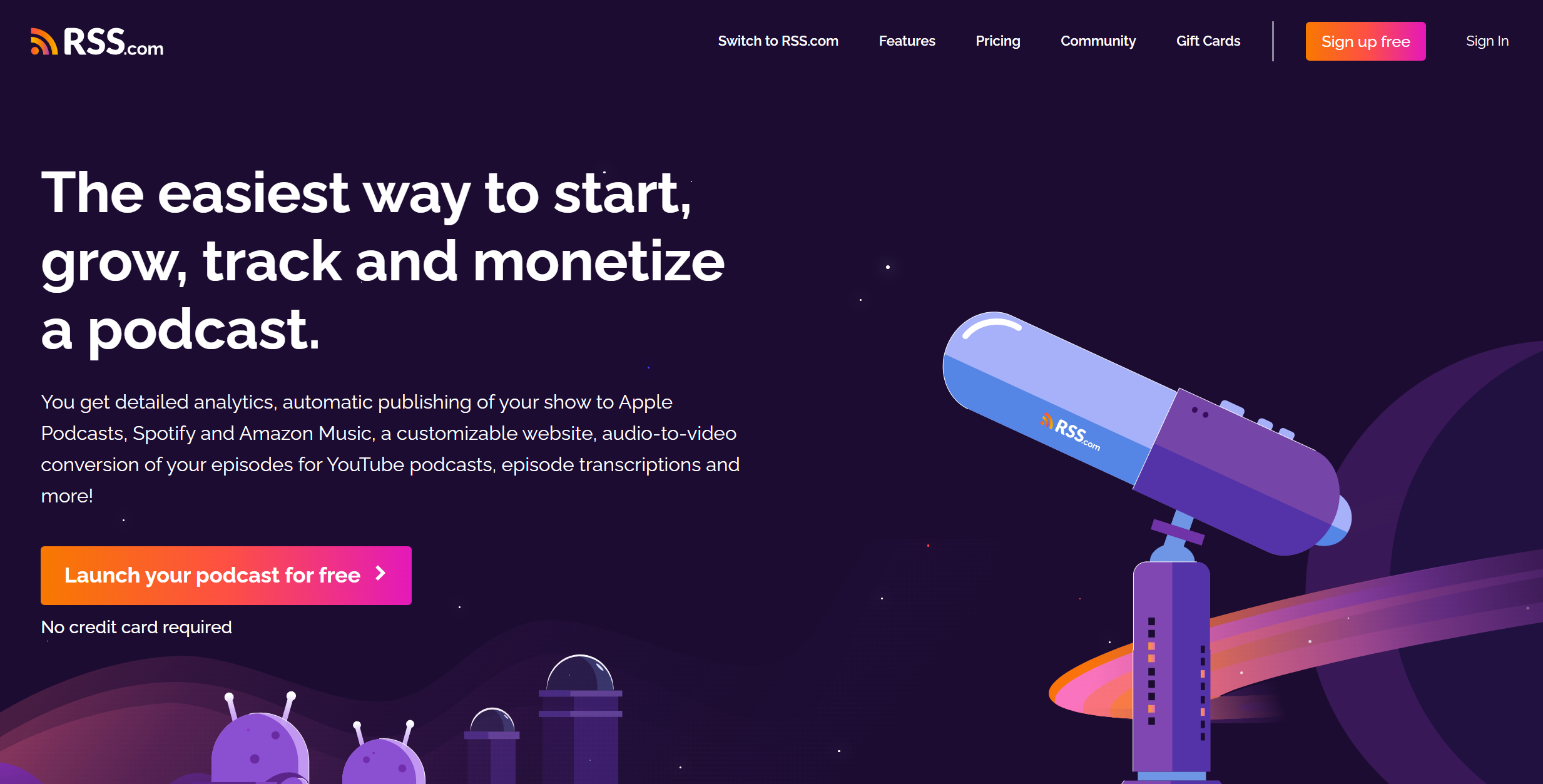 RSS.com is also a PAID podcast hosting service that offers the same basic features that Spotify for Podcasters and Buzzsprout offer regarding hosting, distribution, and access to analytics.