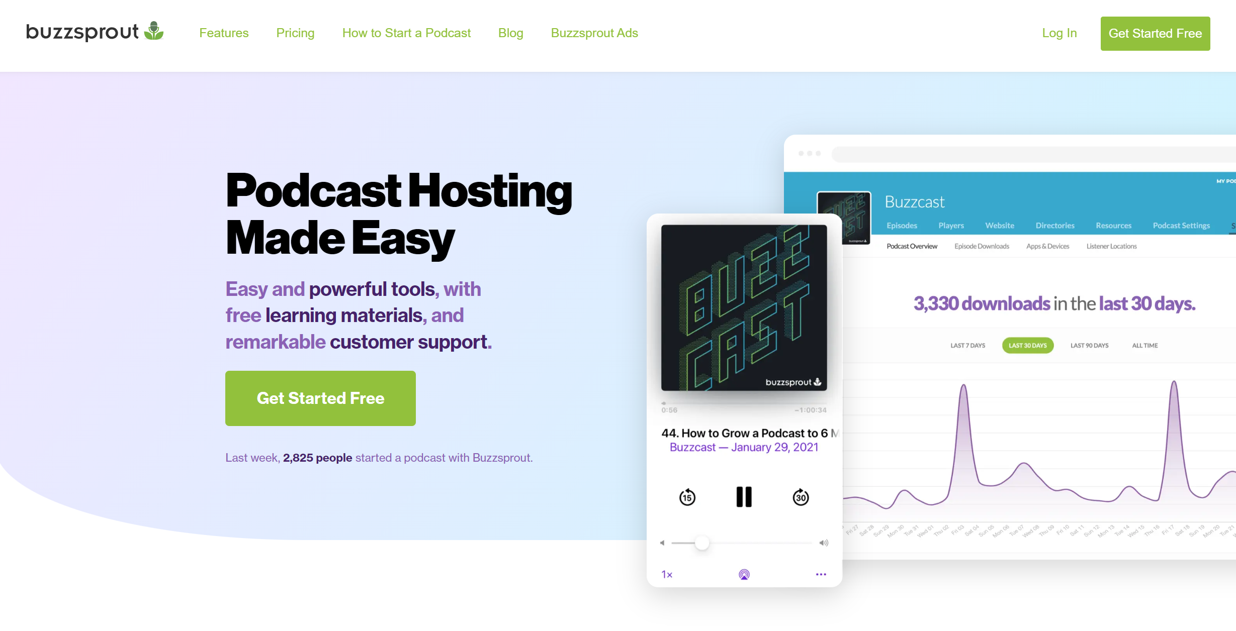 Buzzsprout is one of my TOP choices because it has all of the main features that we’ve talked about: