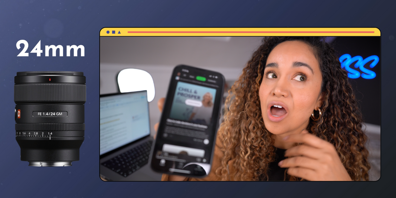 Some creators use a 24mm lens when recording in a really tight space or when they want to be very close to the camera.